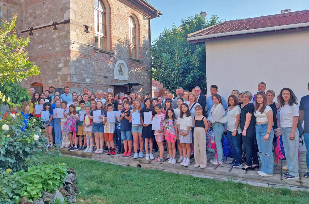 Генералният консул на България в Одрин Борислав Димитров връчи на учениците удостоверенията за завършен клас, подари им тетрадки и химикалки и пожела на всички весела ваканция.