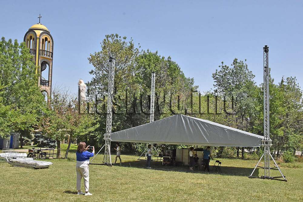 Екипът на театър „Иван Димов“ вече издига откритата сцена в парк „Ямача“.