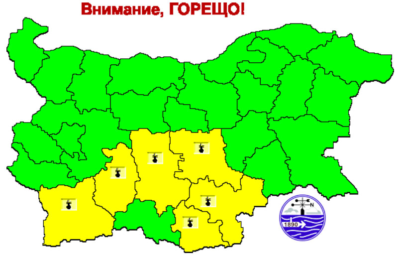 Времето ще е горещо с максимални температури между 35 и 38 градуса. Предупреждението е в сила за всички общини в региона с изключение на Тополовград.