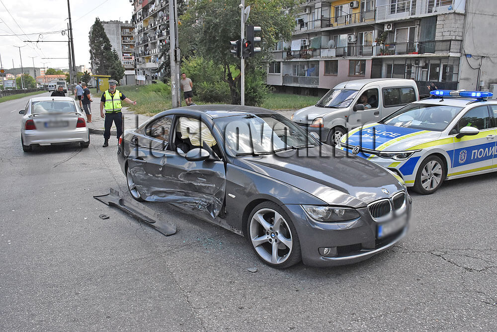 Лек автомобил БМВ се е опитал да завие наляво от булеварда към улица „Дунав“ и е последвал удар със спускащия се по „Васил Левски“ Опел.