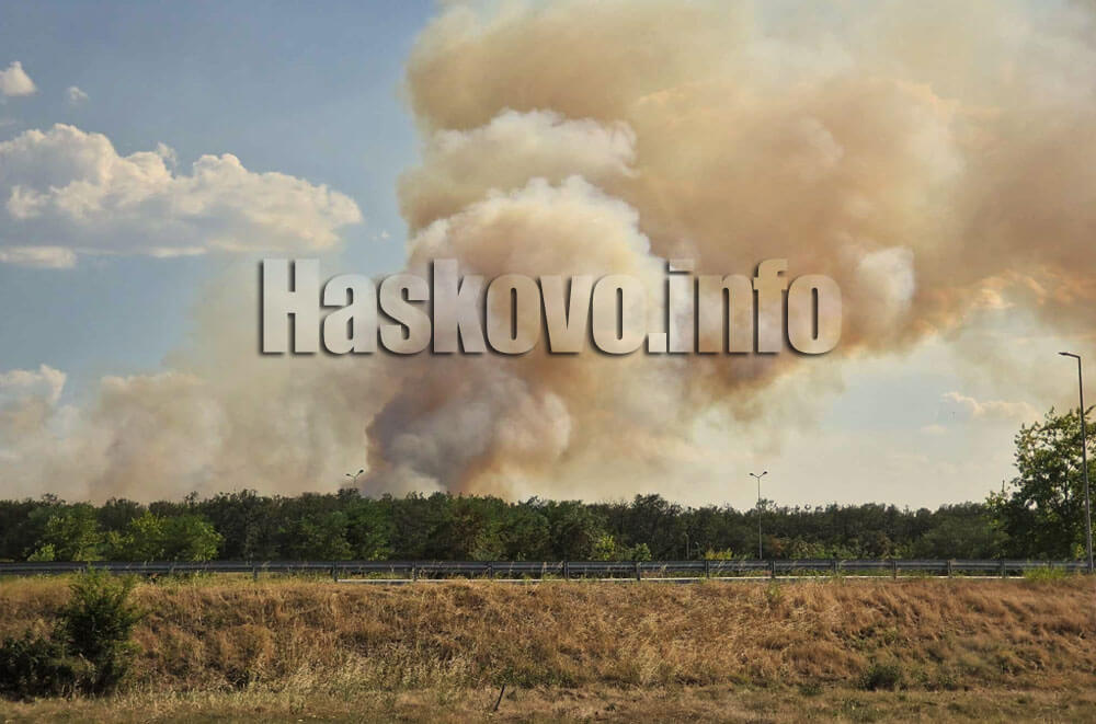 Междувременно голям пожар пламна и в гориста местност между Хасково и Димитровград край старите черешови градини срещу село Крепост.