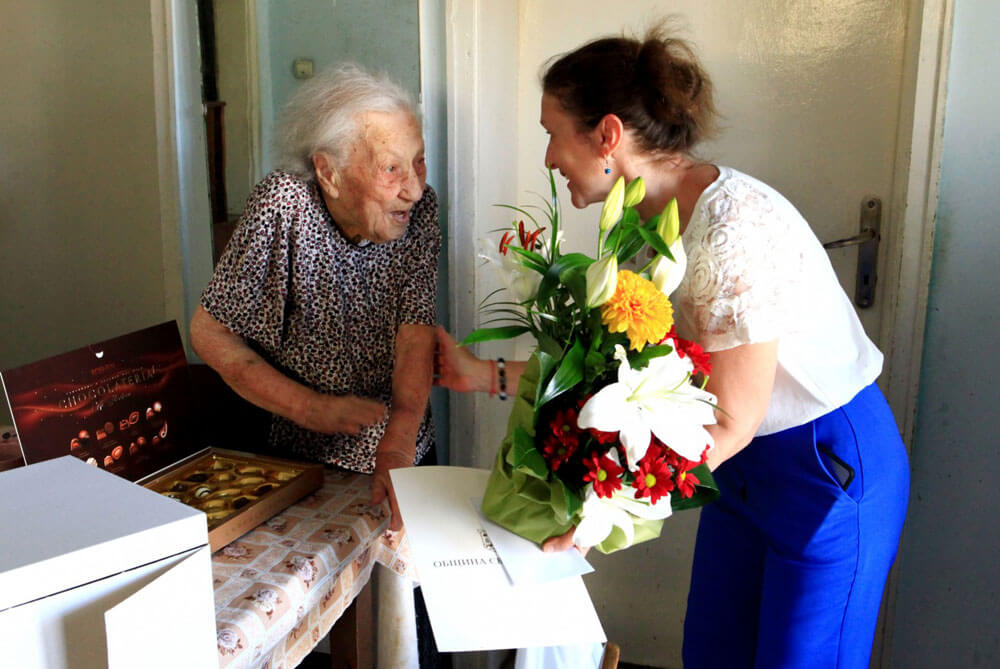 Специални поздрави рожденичката получи от заместник-кмета Светлана Динкова, която я посети в дома й с подаръци и поздравителен адрес от името на кмета арх. Анастас Карчев.