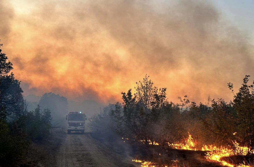 По време на тренировки на бойни самолети един от тях е пропуснал мишената и е уцелил близката гора. Пламъците са на площ от около 4 000 декара. Няма пряка опасност за населените места.