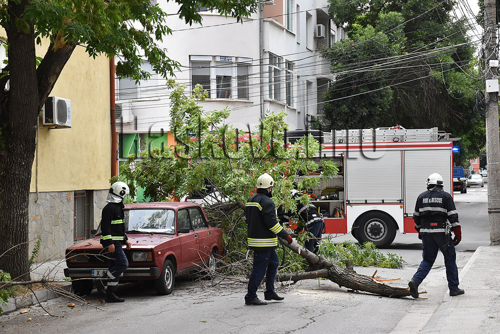 На място пристигнаха екипи на пожарната и полицията. Огнеборците нарязаха дървото и го отстраниха от улицата, която остана временно затворена за движение.