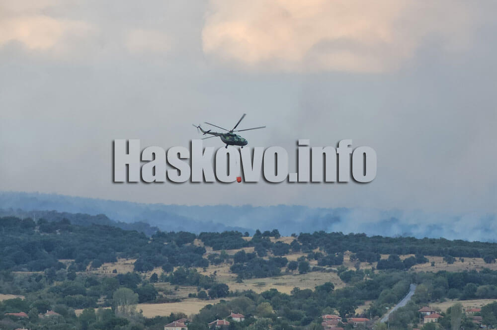 Към района пътуват още 8 екипа на пожарната. В гасенето освен хеликоптера са се включили, тежка верижна техника и 30-тонна водоноска.
