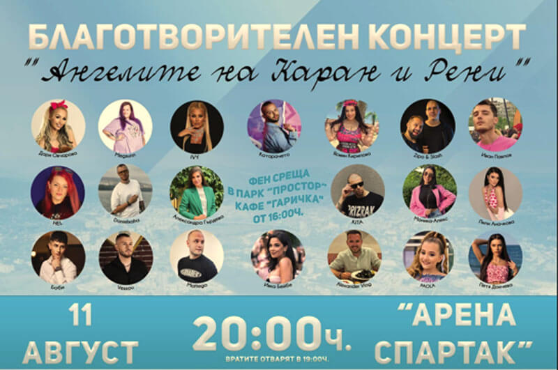 Голям благотворителен концерт „Ангелите на Каран и Рени“ се организира от Теодора Николова и Гергана Шумакова на 11 август от 20 часа в Кърджали.