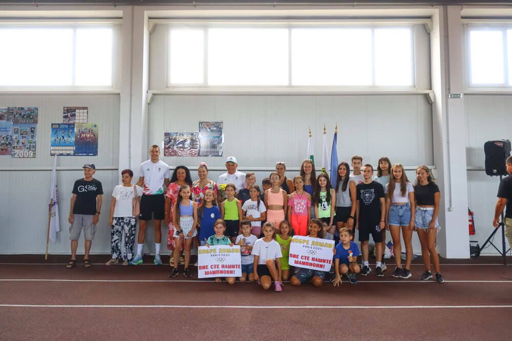 В залата по лека атлетика в Спортен комплекс „Хеброс“ с много трепет и вълнение ги чакаха най-малките лекоатлети, които ги посрещнаха с бурни ръкопляскания, възгласи и плакати с надпис „Добре дошли! Вие сте нашите шампиони!“.