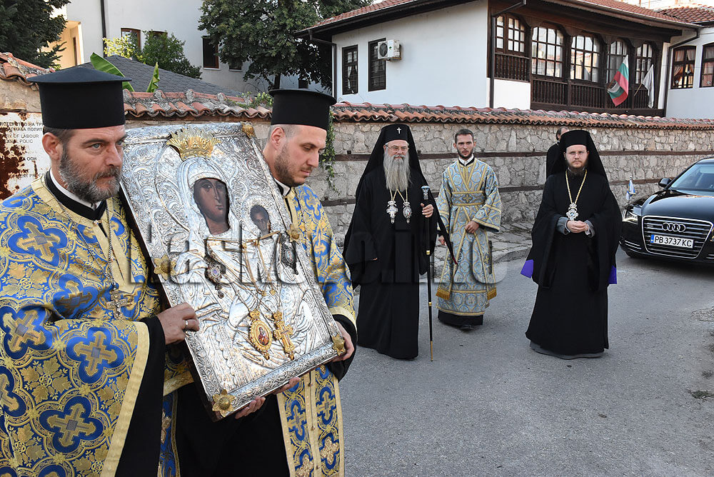 Владиката отслужи празнична вечерня с Молебен канон на Пресвета Богородица. Сред официалните лица бяха кметът Станислав Дечев, председателят на общинския съвет Таня Захариева, заместник-областният управител Митко Петров.