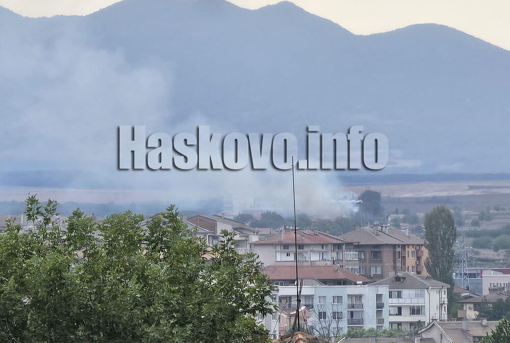 Димът се вижда от високите части на града. Огънят е близо до къщи и производствен цех. На място са изпратени екипи на пожарната.
