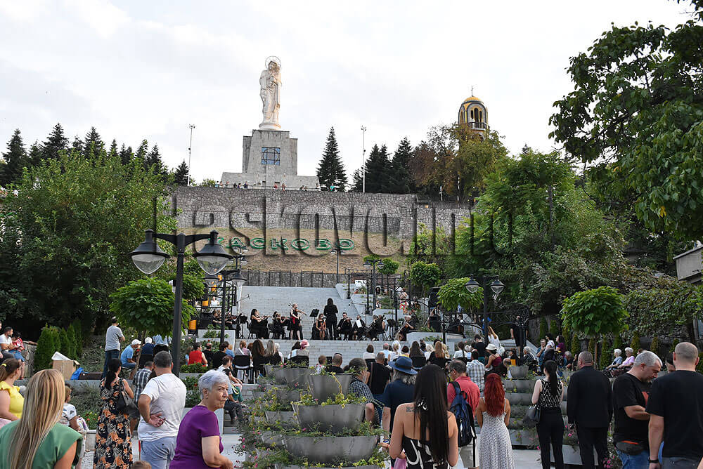 Празничен концерт изнесе тази вечер Камерен оркестър Хасково с диригент Цанислав Петков в подножието на монумента „Св. Богородица“.