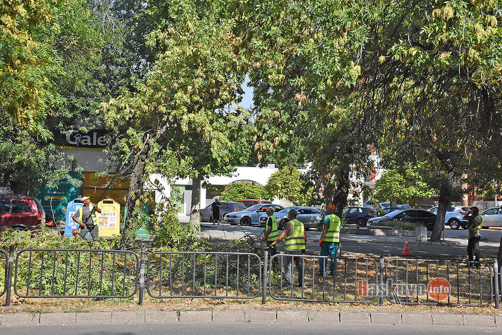 Работници окастриха дървета до централния вход МБАЛ - Хасково.