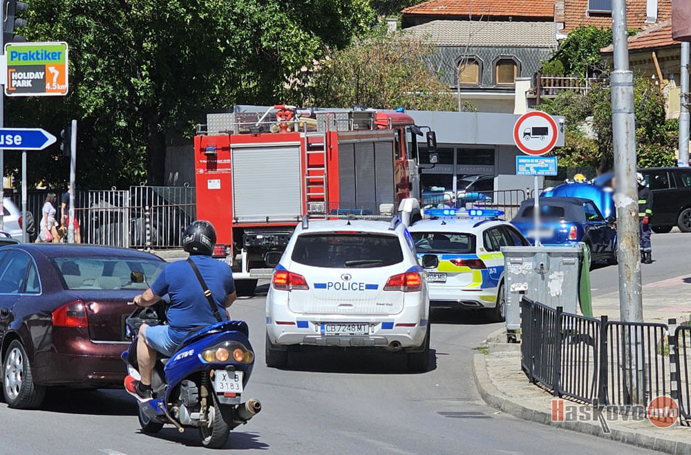 Сигнал за пушещ автомобил блокира за кратко движението на хасковското кръстовище на бул. „България“ към „Съединение“ в ранния следобед. На място пристигнаха екипи на полицията и пожарната.