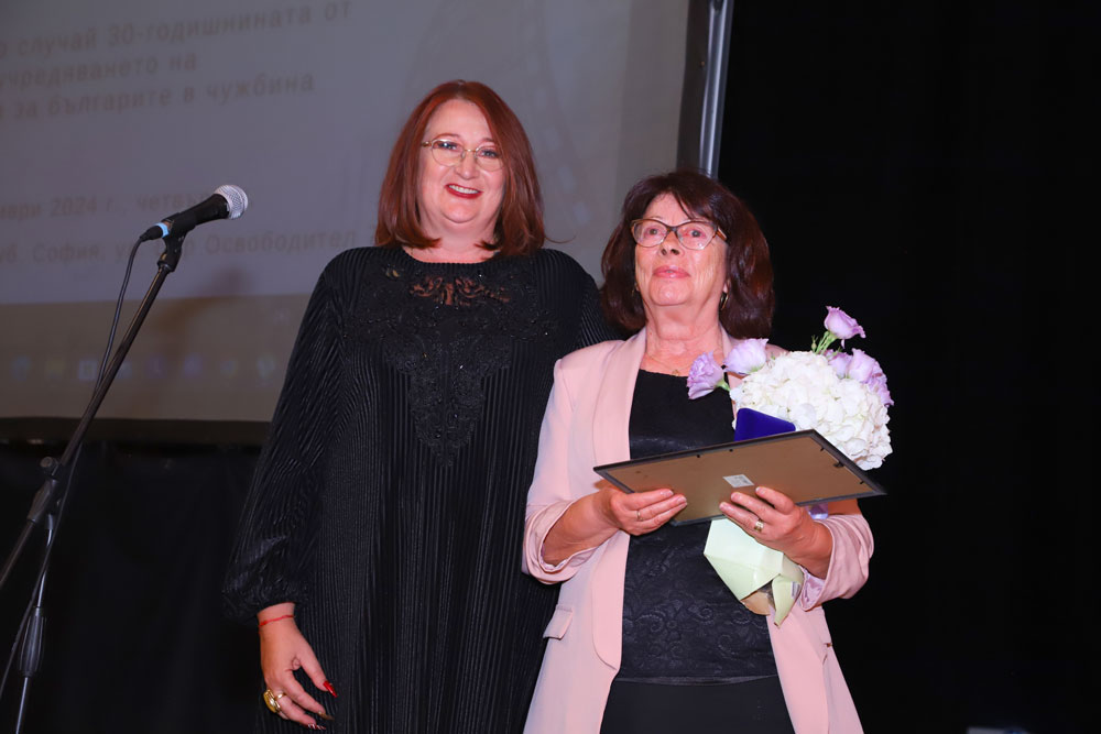 Отличието й се връчва за цялостен принос и родолюбива дейност в областта на образованието, културата и литературата сред нашите сънародници в Украйна и Молдова.