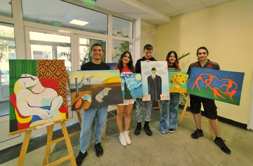 В часовете по живопис и в извънучебно време гимназистите работиха неуморно под ръководството на своя учител Даниела Боева.