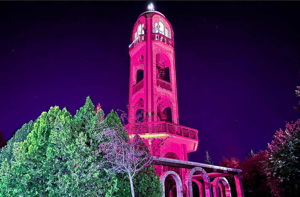 Камбанарията в хасковския парк „Ямача“ засия в розово в подкрепа на борбата с рака на гърдата. Както Haskovo.info писа, в Хасково се извършват безплатни профилактични прегледи.