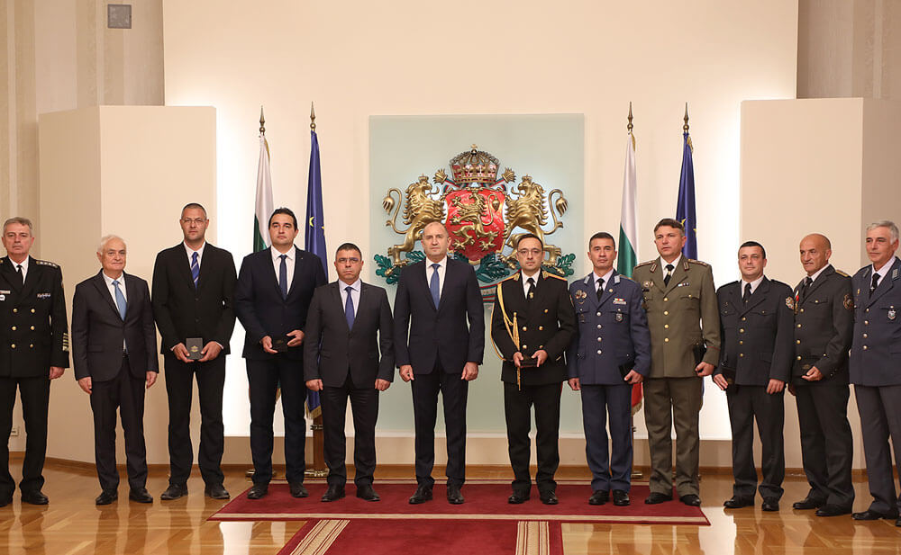 Държавният глава Румен Радев удостои с Почетния знак на президента отличили се в борбата с огнената стихия у нас през изминалото лято служители от пожарната, полицаи, военни и доброволци.