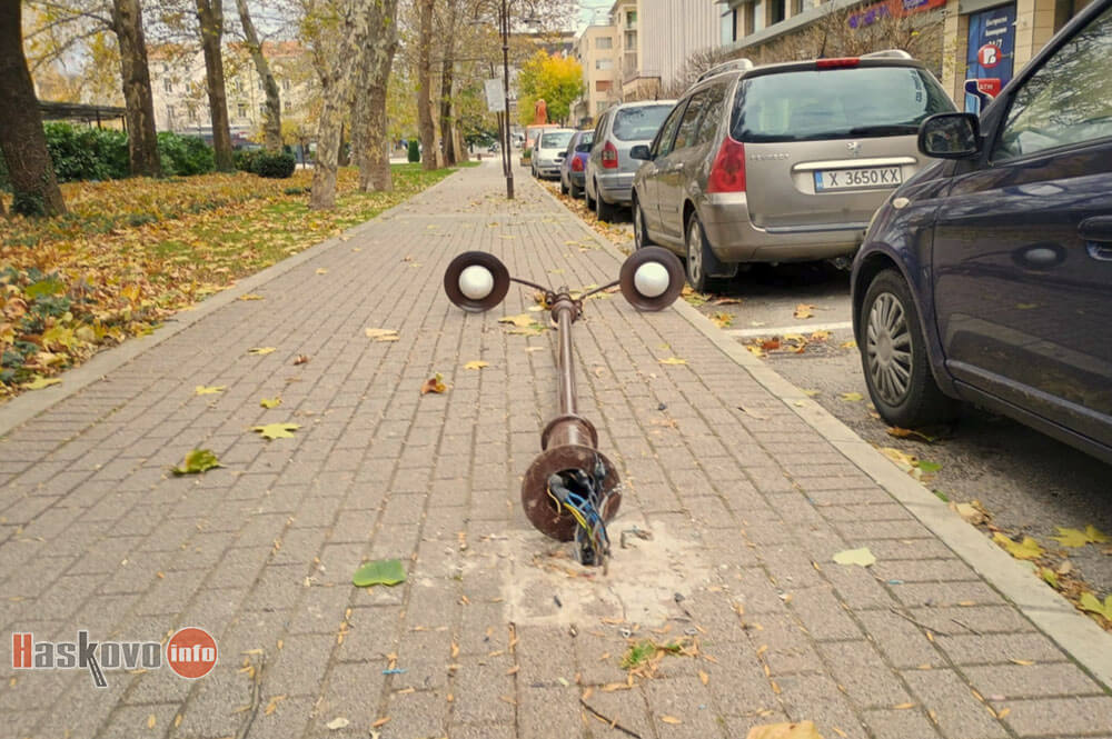 За съборена лампа в центъра на Хасково сигнализираха читатели на Haskovo.info.