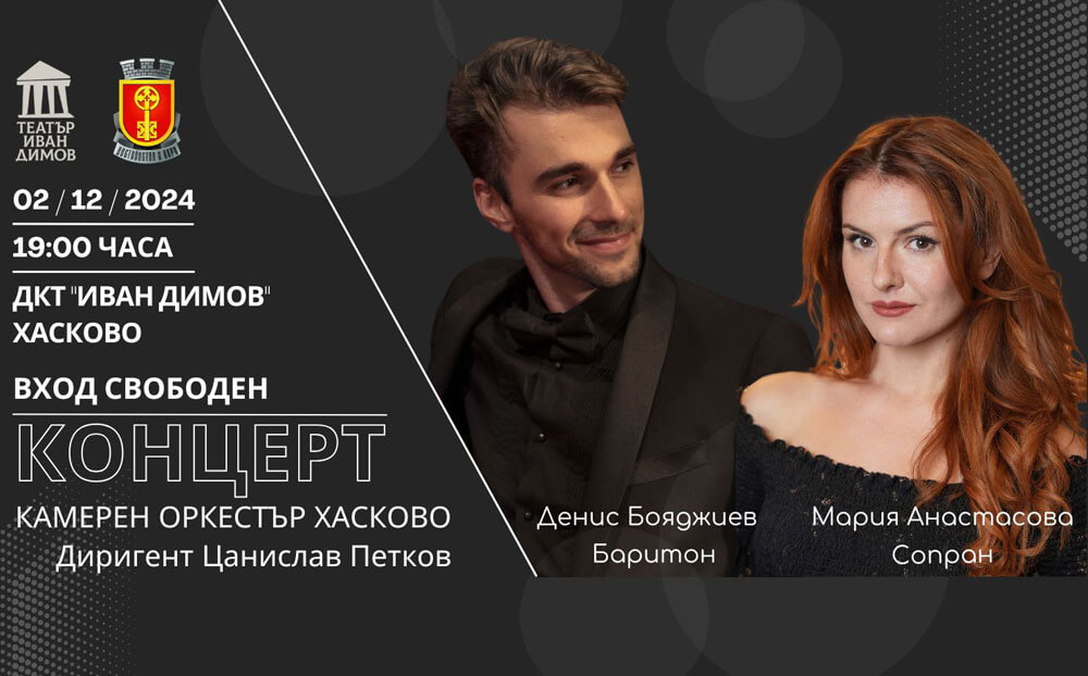 Камерен оркестър Хасково с диригент Цанислав Петков ще изнесе концерт с арии и дуети от световната класика.