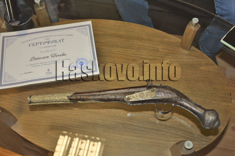 Комитският пищов беше приет от директора на музея Пенко Добрев, който подари едно от изданията на РИМ – Хасково на Вайолет Пенева.