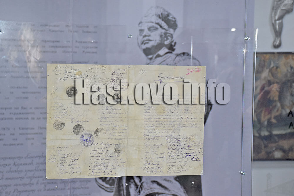 Благодарственото писмо от кметовете от региона до Капитан Петко войвода беше изложено за пръв път в зала „Възраждане“ на Регионалния исторически музей в Хасково.