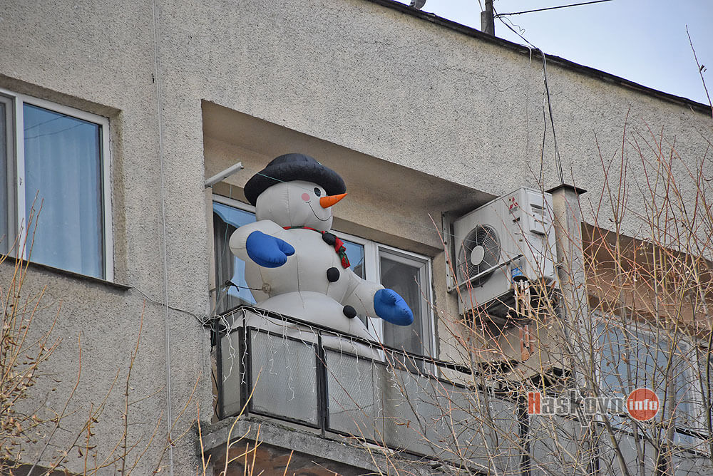 Зимата започва без сняг, но с надуваем снежен човек на тераса в центъра на Хасково.
