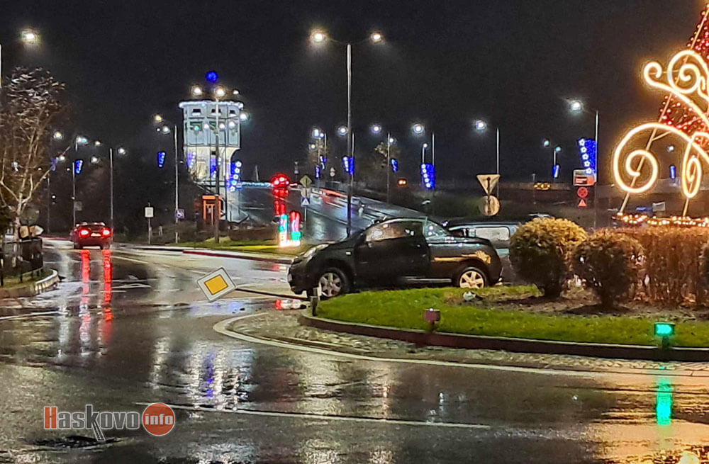 Лек автомобил се качи на кръговото до спортна зала "Младост" в Димитровград.
