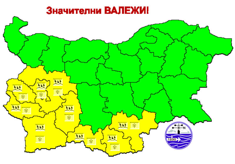 Прогнозата е за температури между минус 1 и 13 градуса. Валежите ще продължат до петък, като дневните температури ще паднат до 4 градуса.