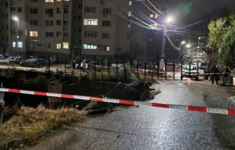 Свлякла се е асфалтовата настилка в близост до изкопа на строеж. Живеещите в района чули тази вечер силен тътен. Хората се изплашили много и излезли навън.