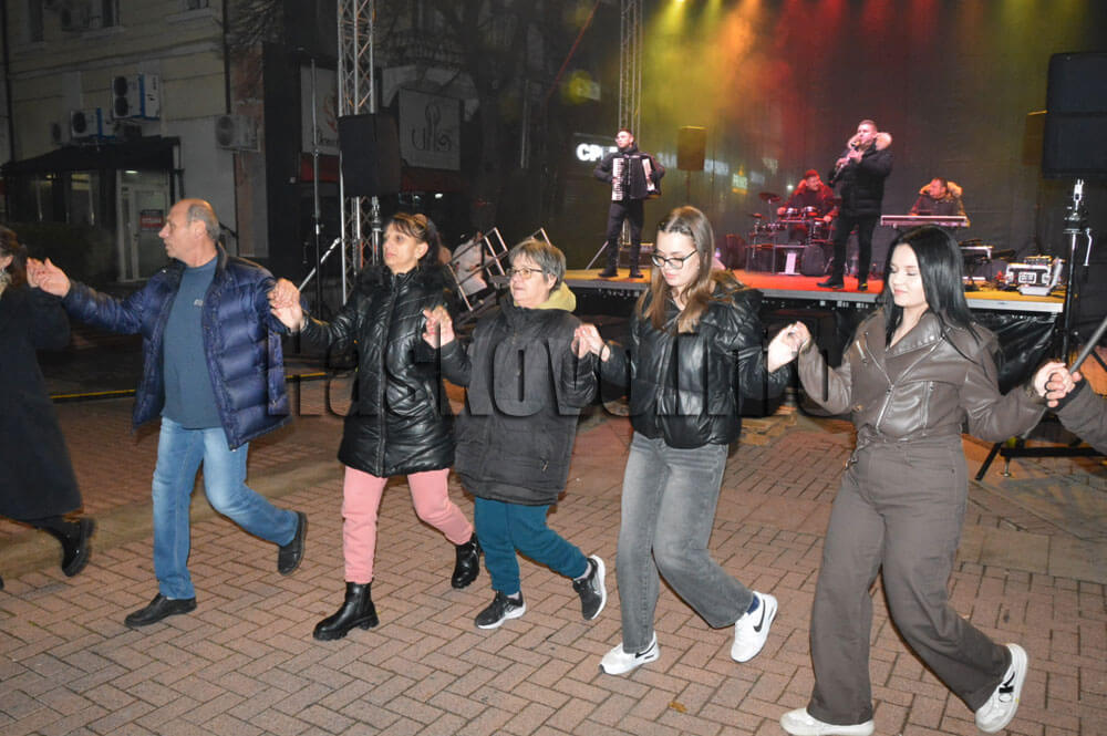 Новогодишно веселие имаше и на площад „България“ в Димитровград с оркестър „Агрофермер“, новогодишна наздравица и заря.
