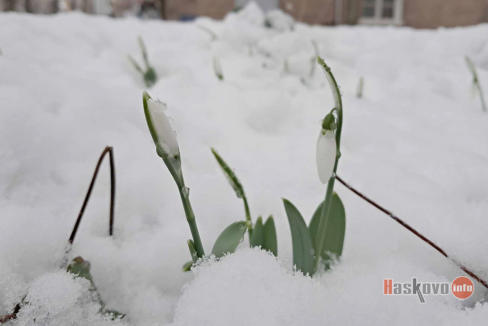 Кокичета вече цъфтят в снежно Хасково.
