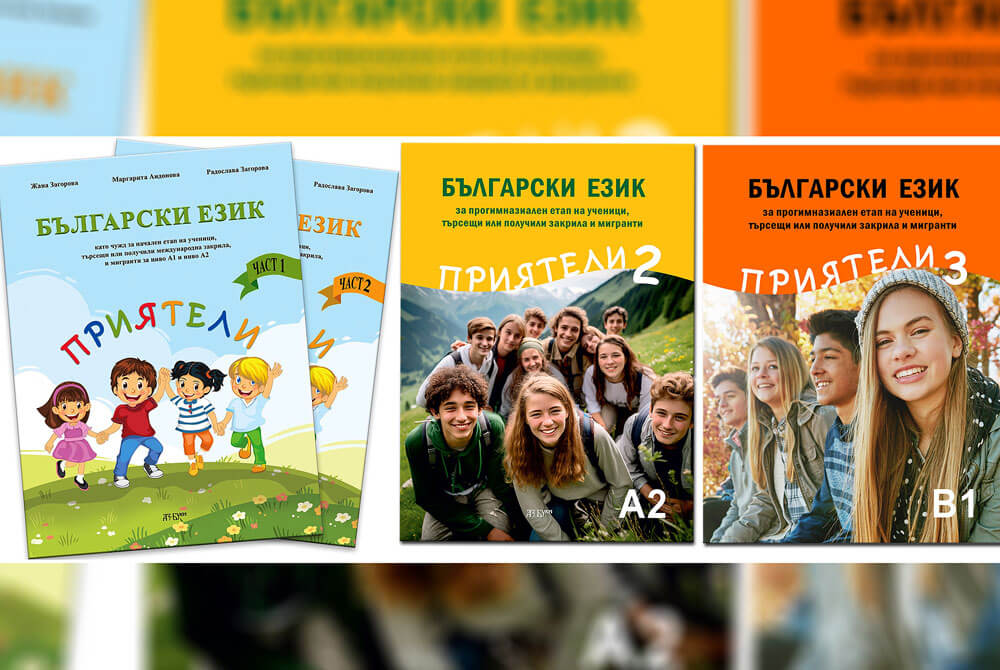 Първите книги, наречени „Приятели“, са изготвени през 2022 г. Те са подготвени за ученици от 1-ви до 4-ти клас, покриват нива А1 и А2, и са разделени в две части.
