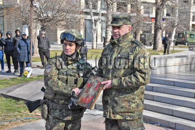 Българският контингент получи икони на Свети Георги от Министерството на отбраната и общината, както и знамето на Хасково.