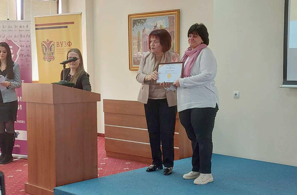 Отличието й бе връчено от Янка Такева, председател на Синдиката на българските учител. Церемонията се състоя в София.