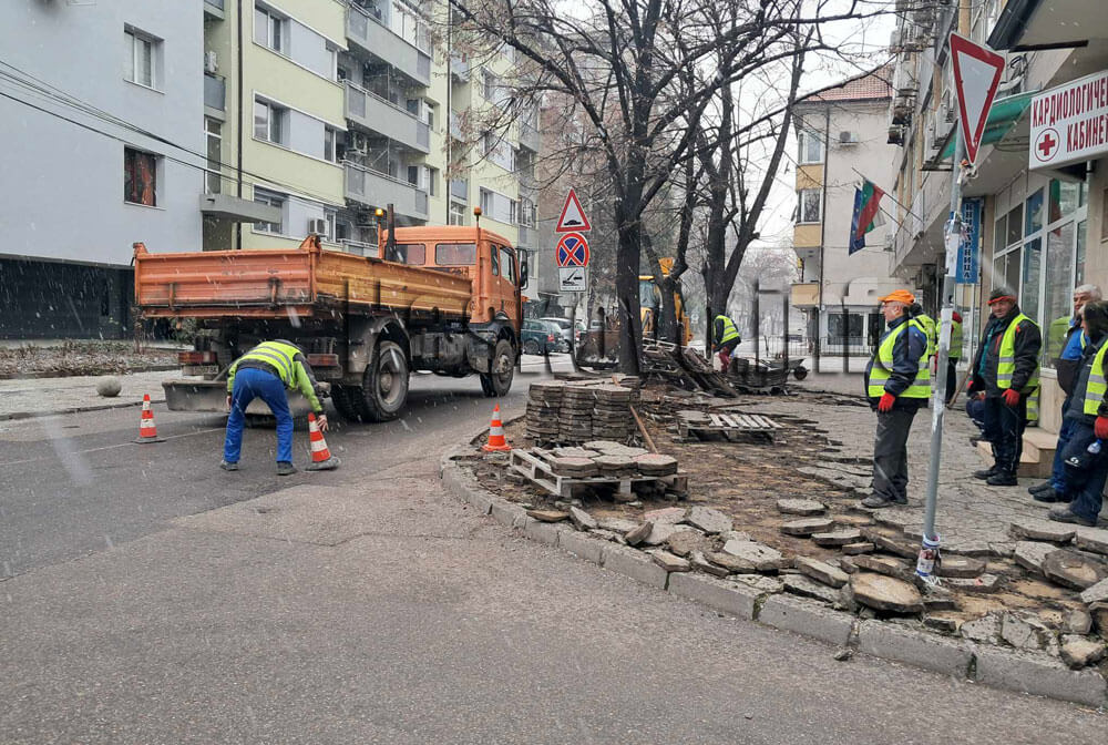 Дейностите се извършват по улица „Добруджа“. Подменят се плочки на тротоара пред РИОСВ. Ремонт се извършва и в посока пресечката с улица „Преслав“.