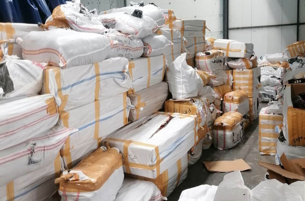 Намерени са 33 234 текстилни изделия, сред които тениски, якета, блузи, чорапи. Открити са още 301 чифта спортни обувки, 88 чифта чехли и 267 дамски чанти.