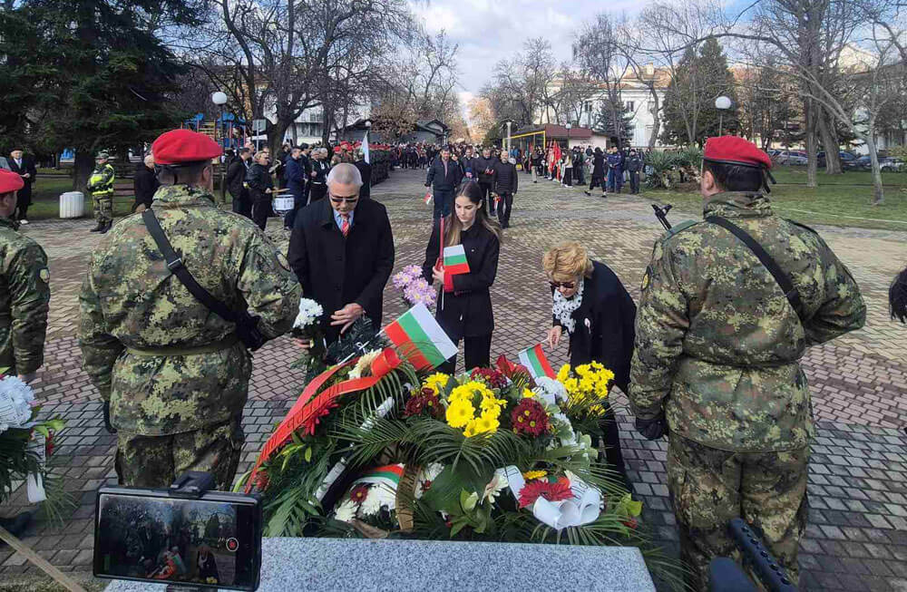 Под звуците на Духовия оркестър множеството се отправи по централната градска алея към паметната плоча в Парка на Свободата, където официални лица и граждани се поклониха пред геройски загиналите с полагане на венци и цветя.