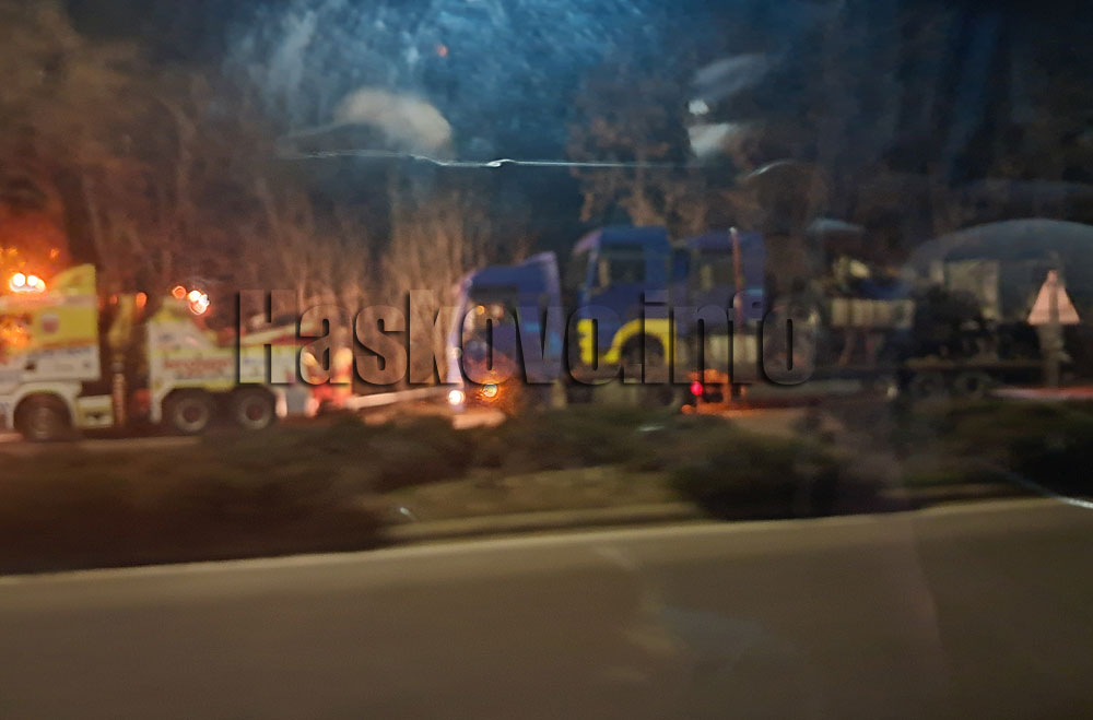 Haskovo.info припомня, че преди 3 дни в село Радиево горя тир, натоварен с влекачи. Явно сега се транспортира неговият товар.