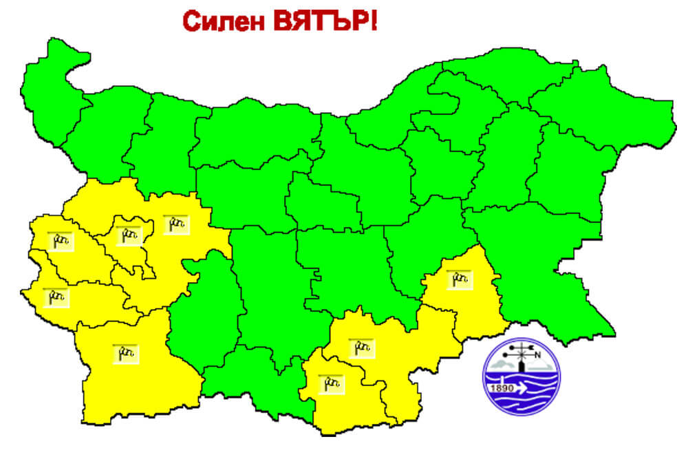 Ще духа временно силен и поривист вятър от юг-югозапад. Скоростта му ще е между 50 и 70 км/ч, а поривите ще достигат 90 км/ч.