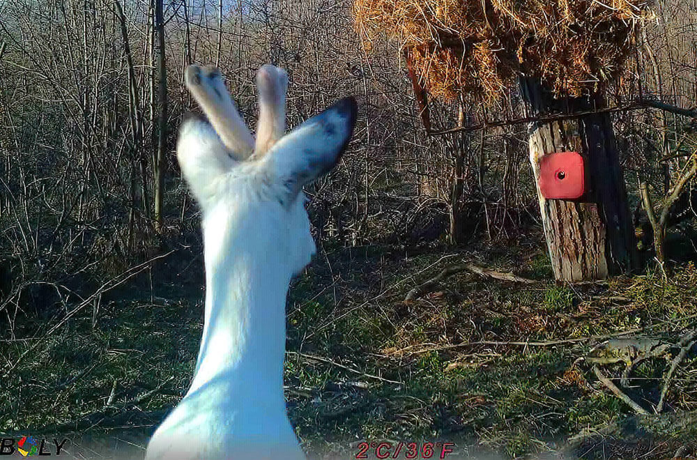 Фотокапан на територията на ЛРС-Хасково улови сръндак-албинос в близост до хранилка. Това се случва за първи път, казват дългогодишни ловци.