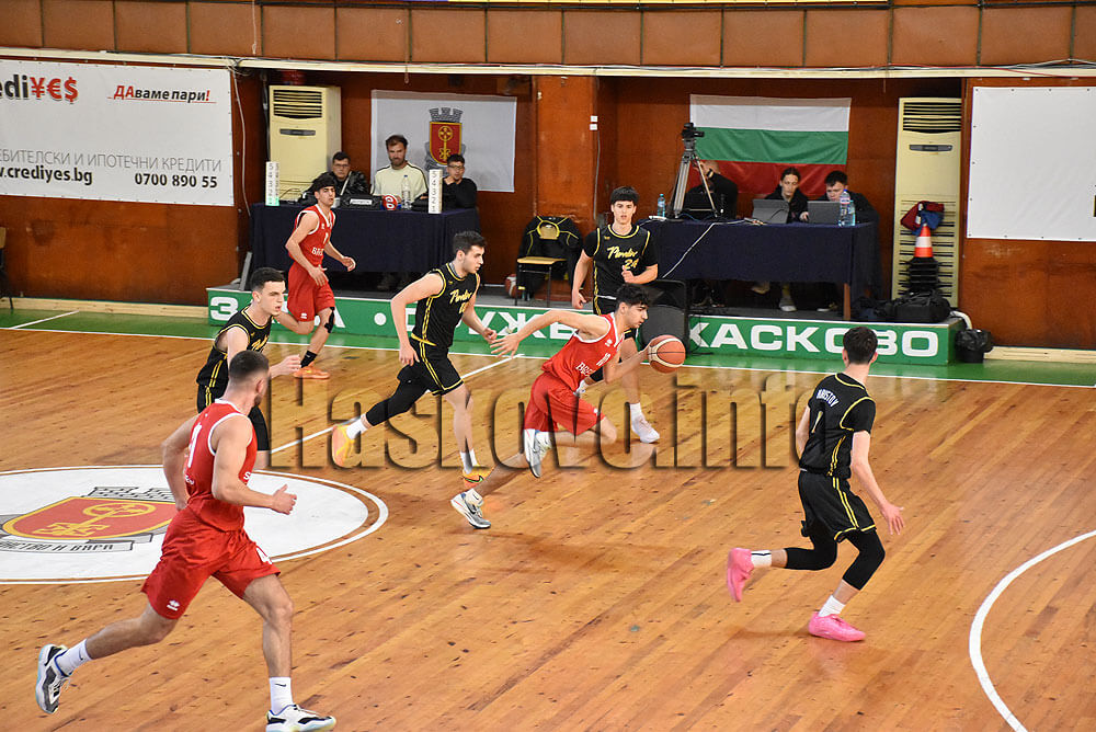 Момчетата на треньора Янко Желев се наложиха с 98:79. Хасковлии влязоха трудно в двубоя, като в началото на първата част изоставаха с десетина точки, но в крайна сметка успяха да обърнат резултата и я спечелиха с 24:23. След това те поеха инициативата и затвориха мача с голяма преднина.