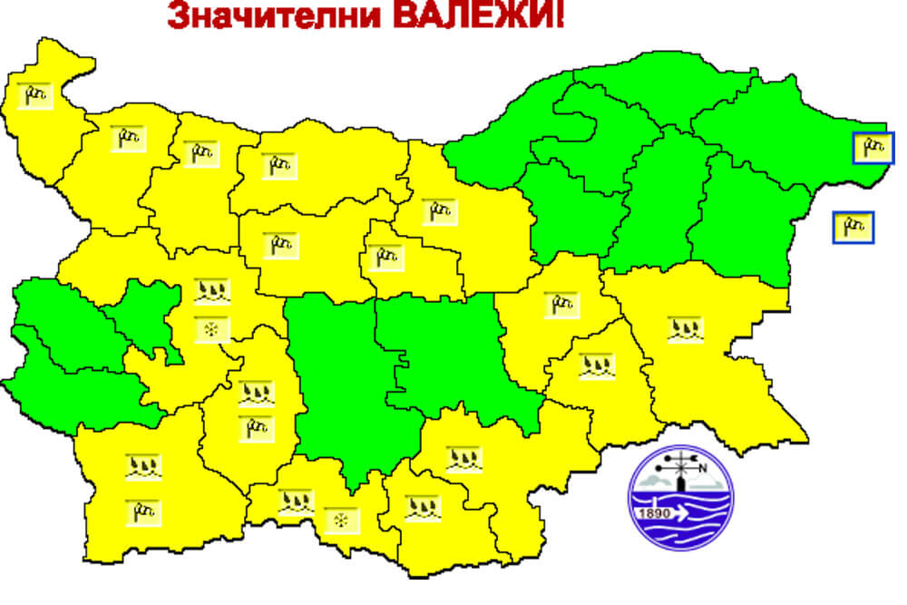 Предупреждението е в сила за всички общини с изключение на Димитровград и Симеоновград.