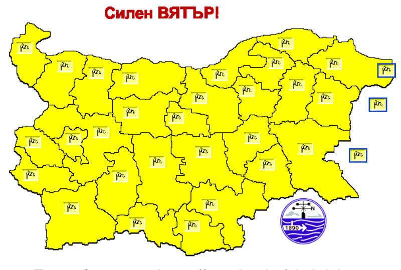 Жълт код за силен вятър е обявен за днес за цялата страна от Националния институт по метеорология и хидрология.
