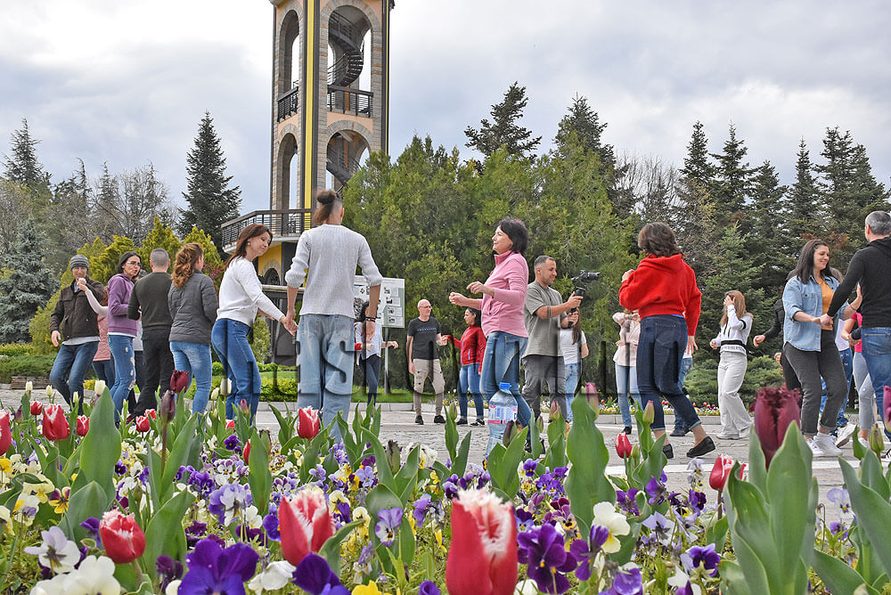 Хасковлии танцуваха до монумента „Света Богородица“. Видеото от тяхното изпълнение ще бъде изпратено на организаторите на международната проява, които ще го включат в репортажа си от всички точки по света.