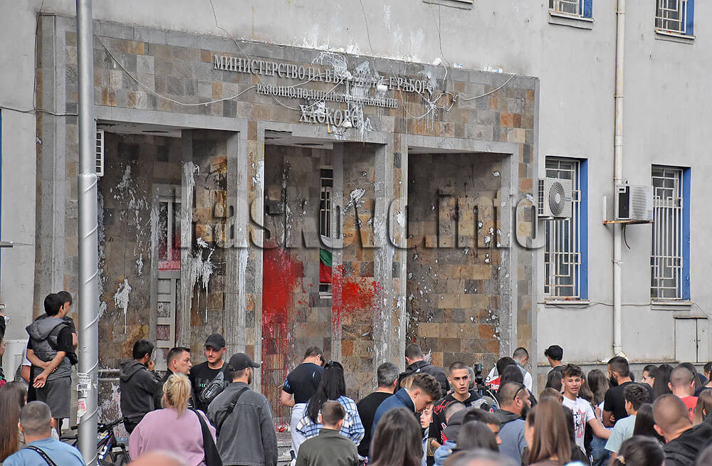 Протестиращи щурмуваха хасковската полиция – ВИДЕО