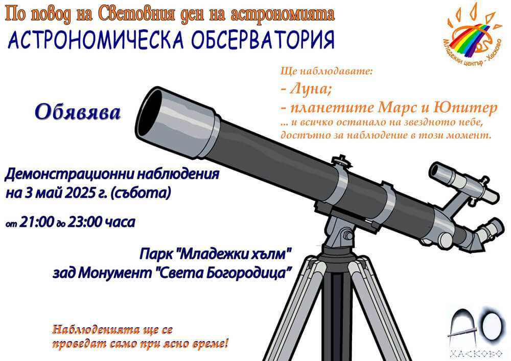 Демонстрационни наблюдения с телескоп ще се проведат тази вечер от 21 до 23 часа в Хасково.
