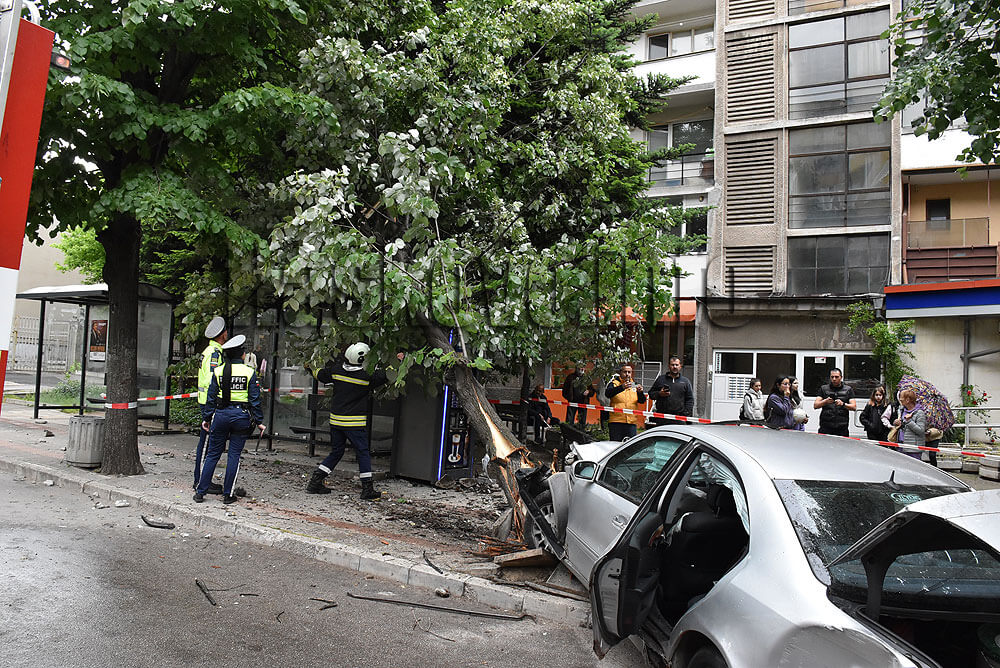 На косъм от трагедия в Хасково: Кола се заби в дърво и го събори върху спирка