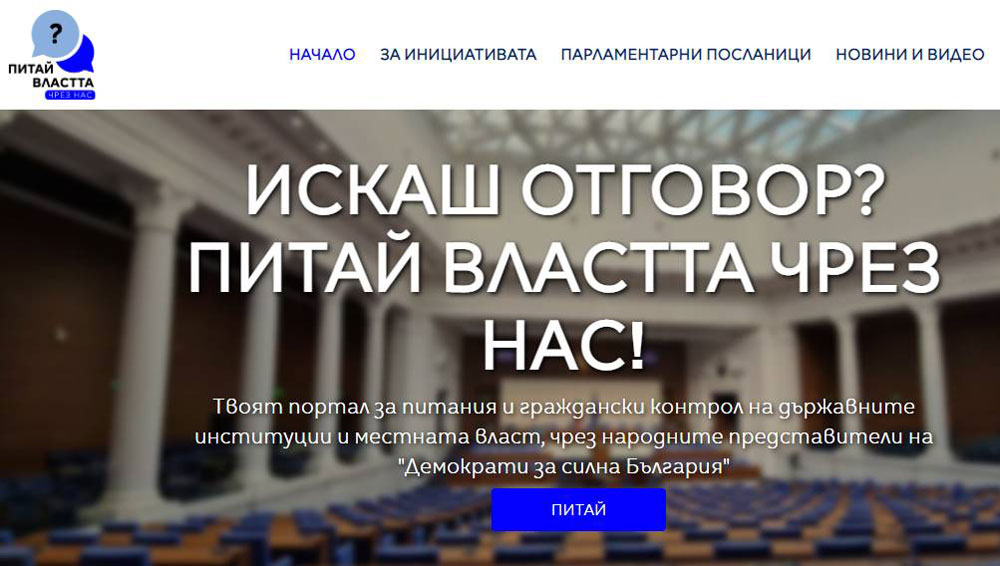 С помощта на портала всеки може да отправи своите въпроси чрез народните представители на „Демократи за силна България“, които са част от коалицията „Продължаваме промяната – Демократична България“ и евродепутата Радан Кънев.