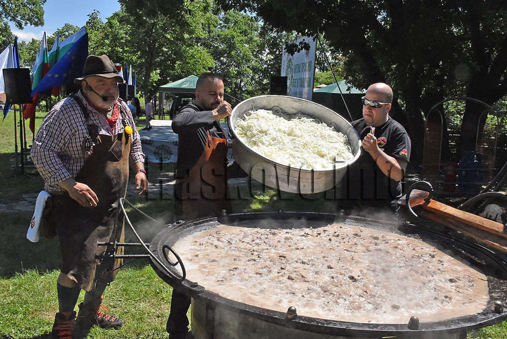 Ути Бъчваров каза, че ястието ще е готово към 17 часа. В разгара на кулинарното шоу, когато всеки ще може да опита от специалитета, ще започне концертът на Народен оркестър към Община Хасково с ръководител Димчо Йорданов.