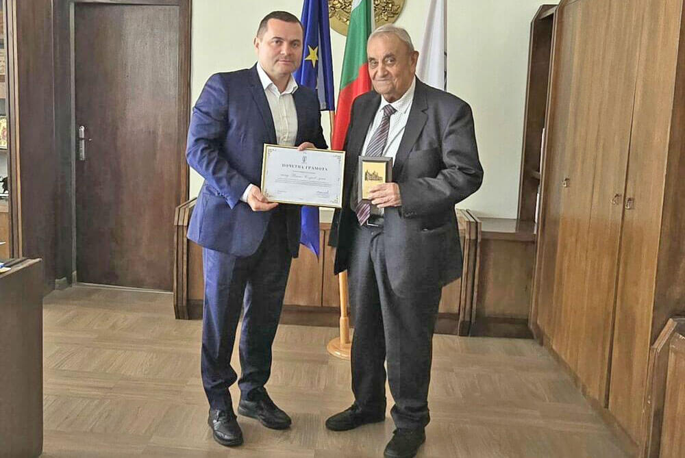 Почетната грамота и плакетът бяха връчени на акад. Сгурев от кмета на община Русе Пенчо Милков.