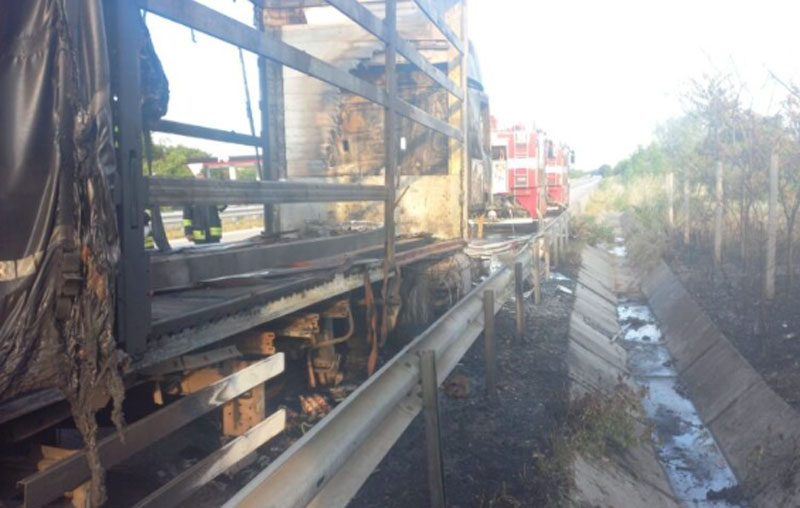 Горящ тир предизвика 5 пожара по магистрала „Марица“, шофьорът е със счупен крак